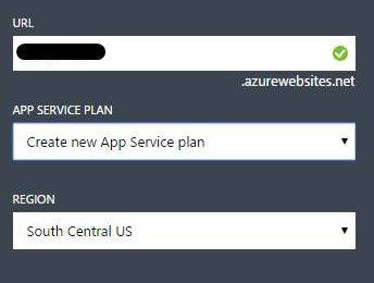 - For APP SERVICE PLAN (formerly called the WEB HOSTING PLAN), leave the default option of ‘Create new app service plan‘