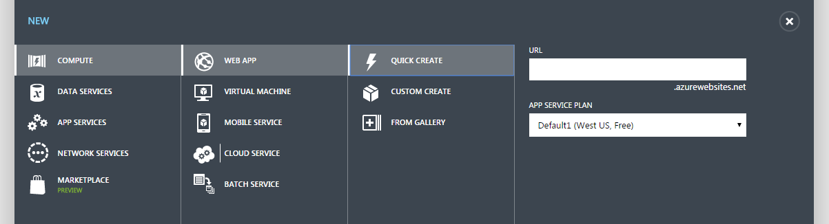 - From the next menu that appears, click QUICK CREATE: