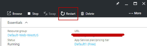 Sometimes after Azure has been down or Mlab has been down (either for a planned update or a temporary problem), you may need to restart your site in Azure to make it work again. (Note: Not everyone finds this step necessary. You do this step if you find that your site is not working.)