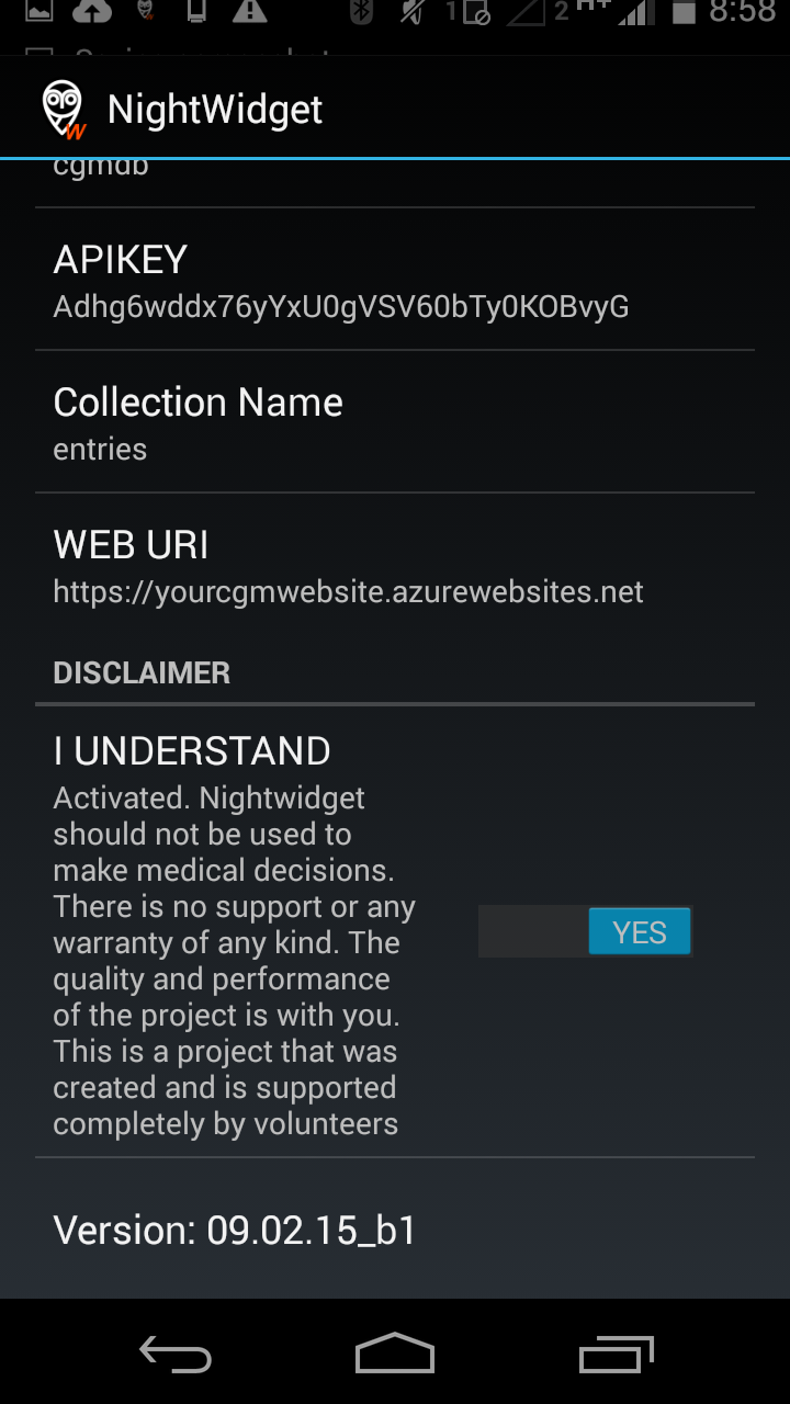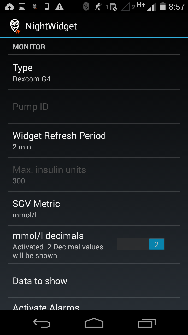If you have set up all the information correctly they the widget should display bgl data on your home screen. If not recheck that all information entered into the NightWidget settings is correct