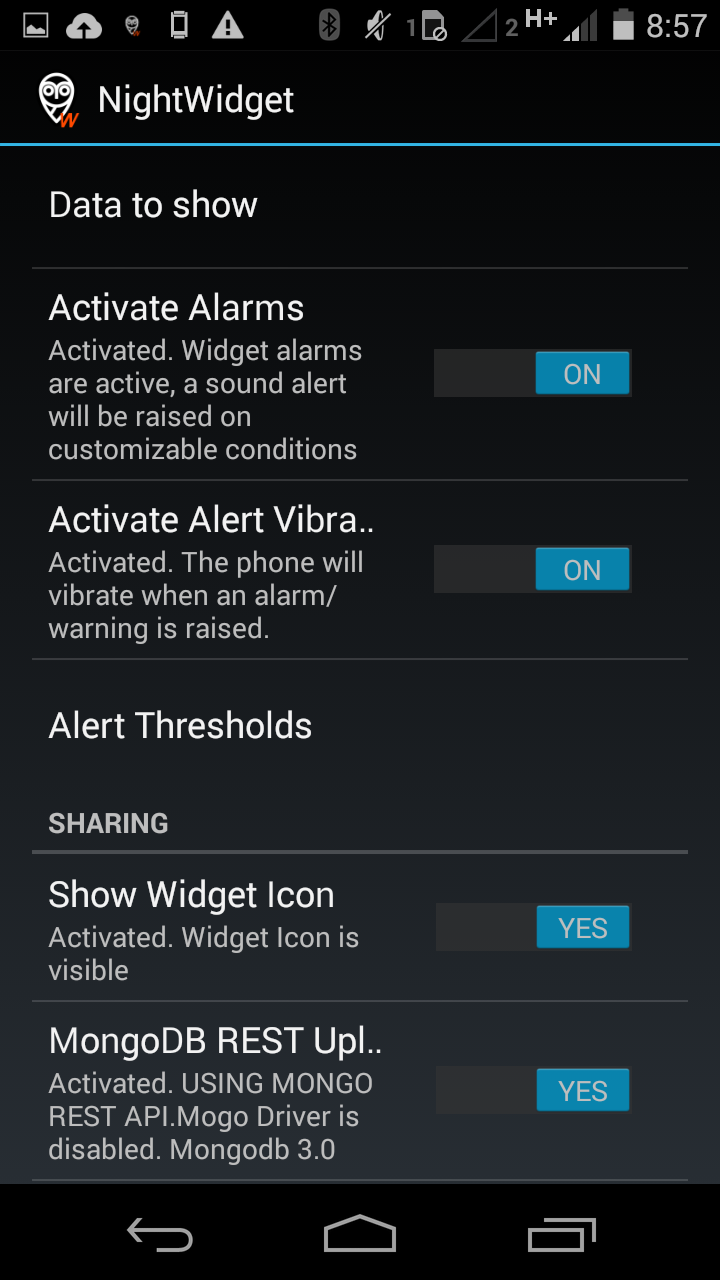 You can switch alarms on the widget and customise alert levels, sounds and vibrations