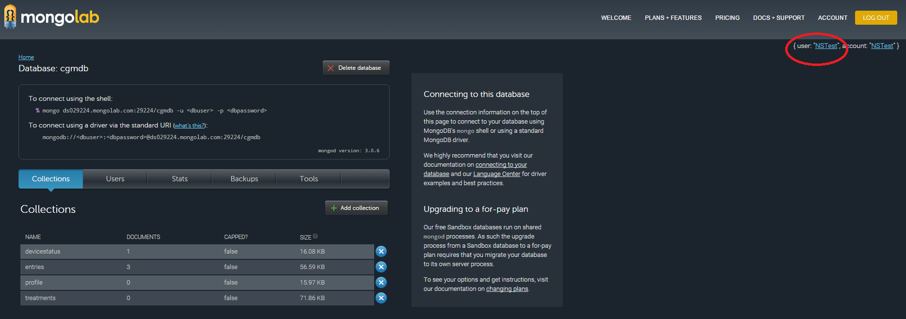 - “APIKEY” – this is obtained from your Mongolab account, instructions above