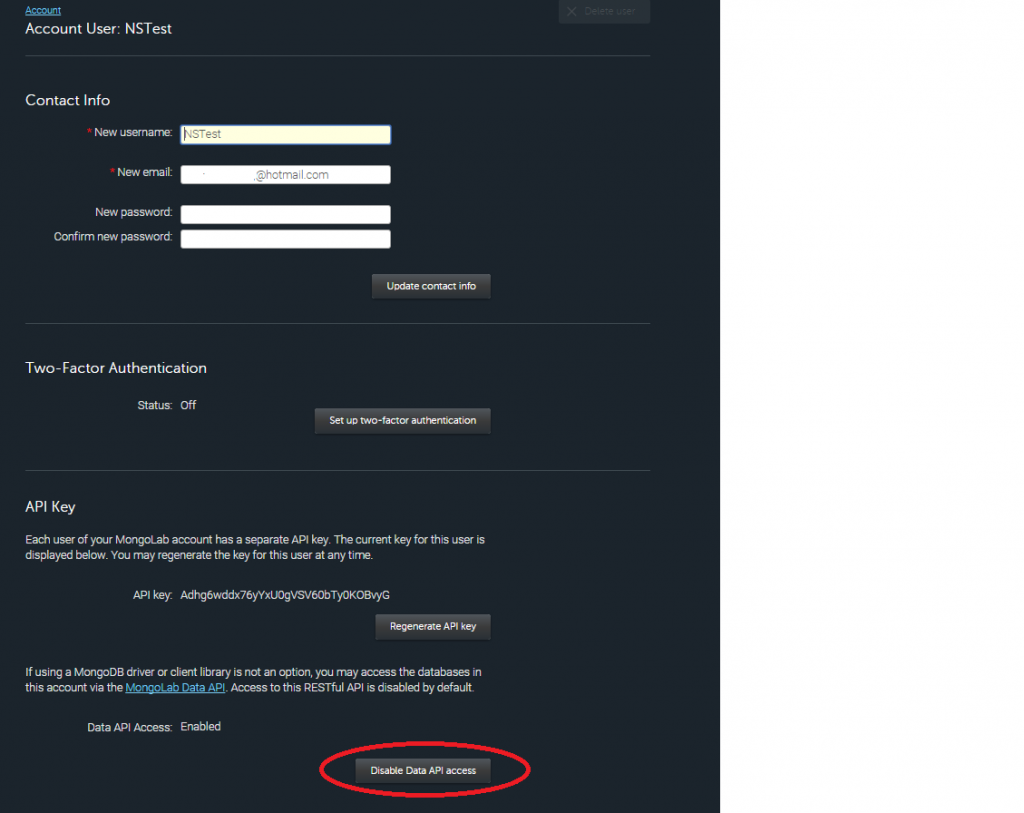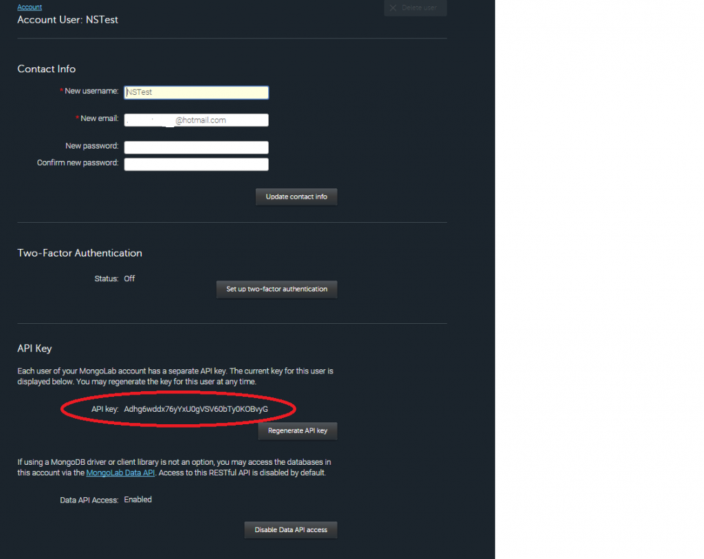 API KEY in Mongolab