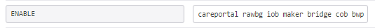 If you have previously set an “ENABLE” value (if you use Care Portal or raw data, for example), you will modify the existing value for ENABLE to add any additional features you wish to use. If you do not have an ENABLE variable set, add ENABLE in the next blank left-hand box (under Application Settings/App Settings in Azure or in Settings/Config Variables in Heroku) and place selected features from the list below in the value box to its right. You can use choose to enable as many or as few of the plugins as you wish. After you are done, be sure to click “save” to save the settings. Note: you can only have a single ENABLE variable set. All desired features go in the same box as a space delimited list (see examples below).