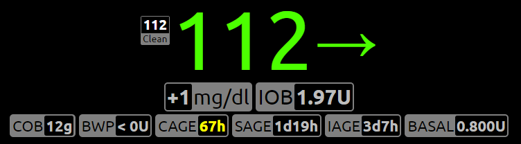 The IAGE plugin tracks the number of days and hours since the last Insulin Change treatment that was recorded. Nightscout site users can record the insulin change (e.g., cartridge change, fill, etc.) using CarePortal. IAGE is displayed on the site in the IAGE “pillbox” if the IAGE plugin is turned on in the browser settings or set to “always” be displayed in the server settings.