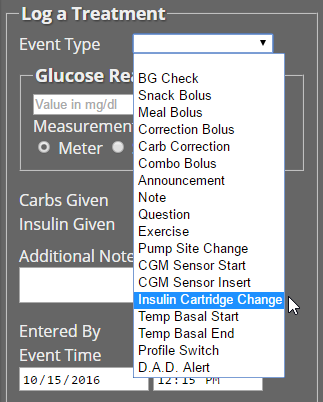 CarePortal allows the entry of treatment and tracking information from a Nightscout site or from the CarePortal app for Pebble. (Note: other setups also use CarePortal to integrate external data.)